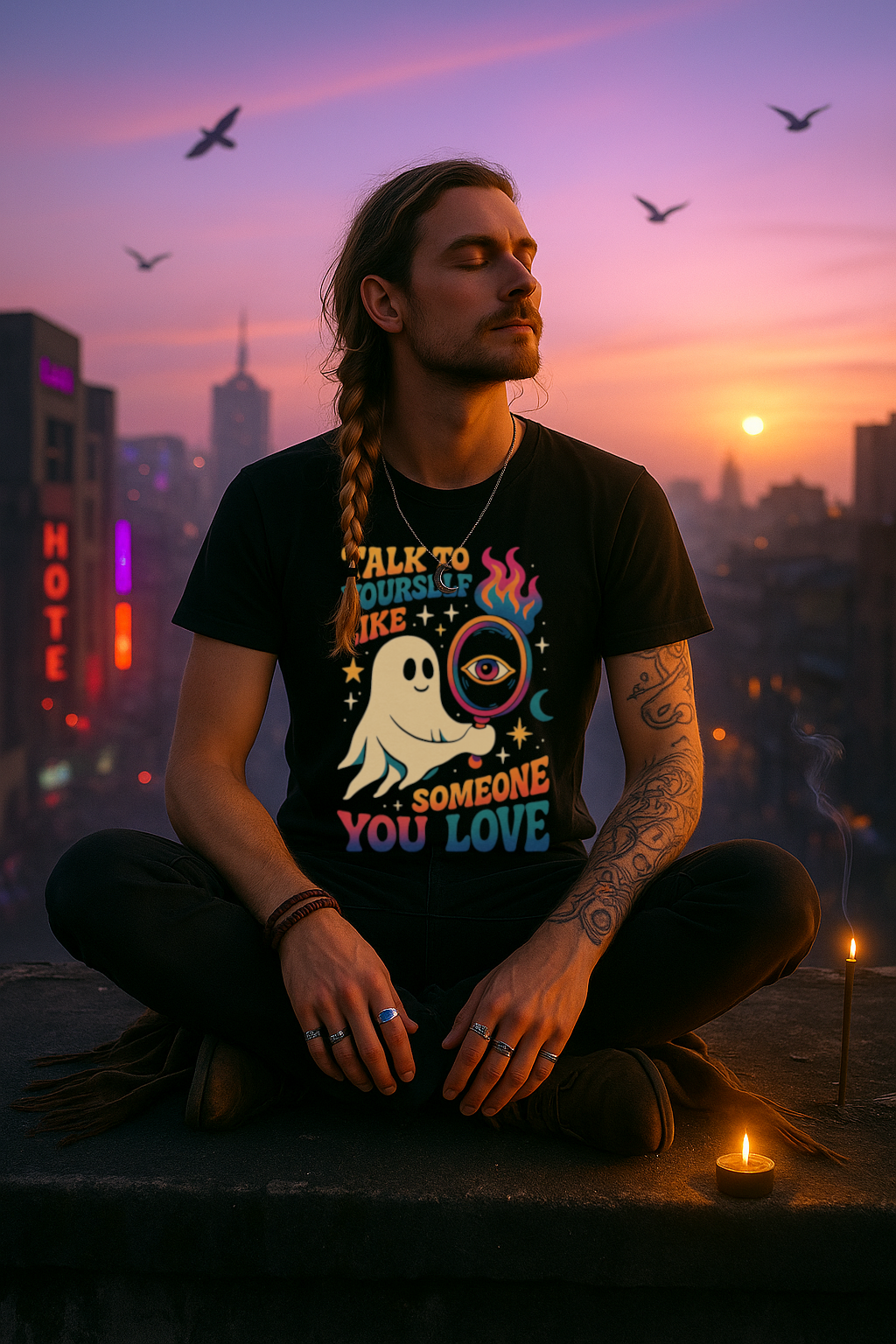 The way you speak to yourself shapes the person you become. This mantra carries gentle fire — a reminder that love begins within. Printed on the Bella + Canvas 3001 pre-shrunk for unmatched softness and unisex comfort.