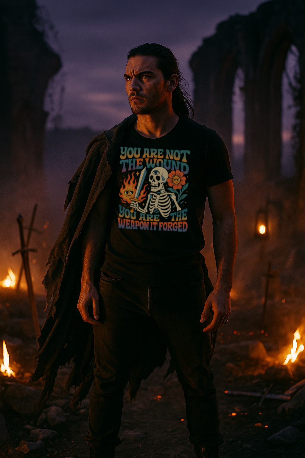 Your wounds did not break you — they forged you. This shirt is a wearable philosophy: pain transformed into power, weakness into steel. Printed on Bella + Canvas 3001 pre-shrunk fabric for premium softness and unisex comfort.